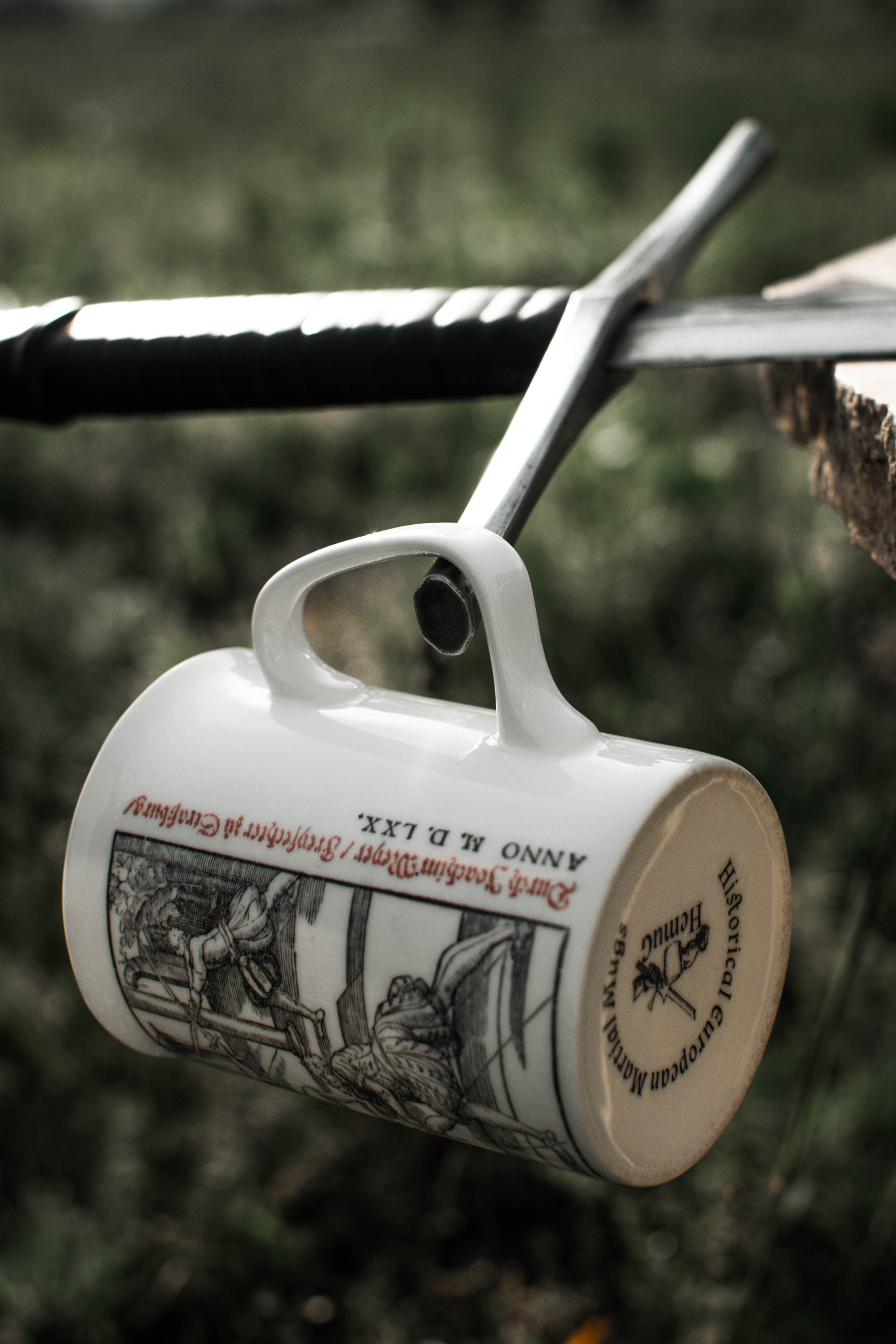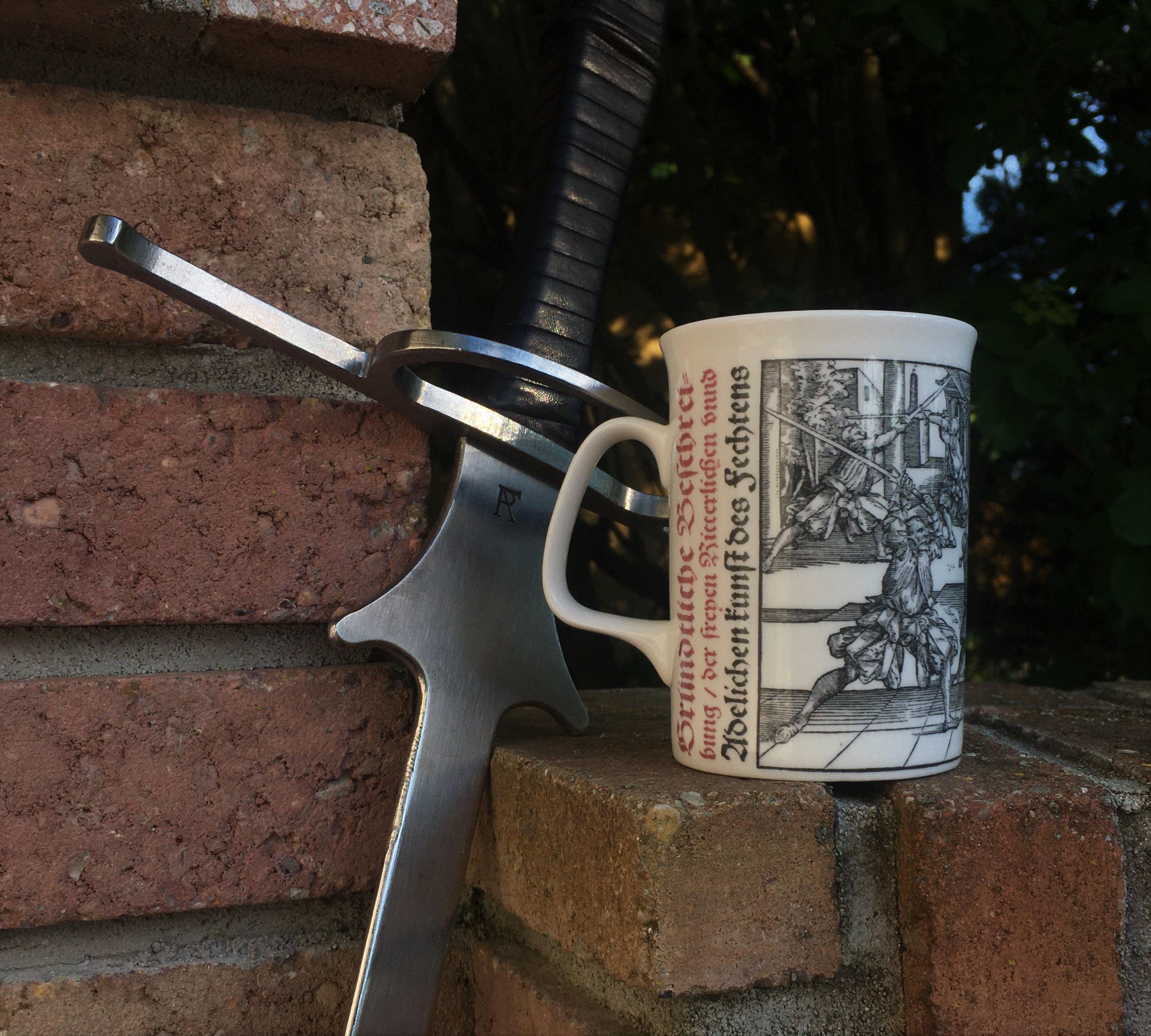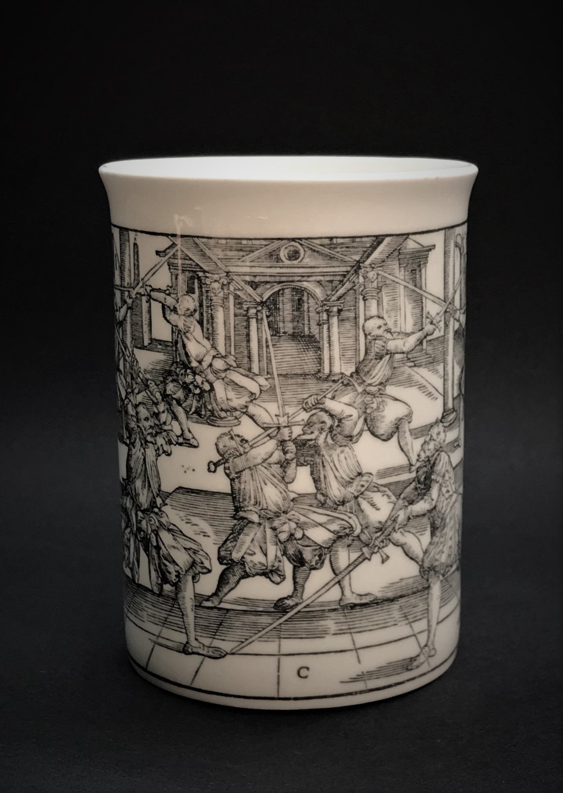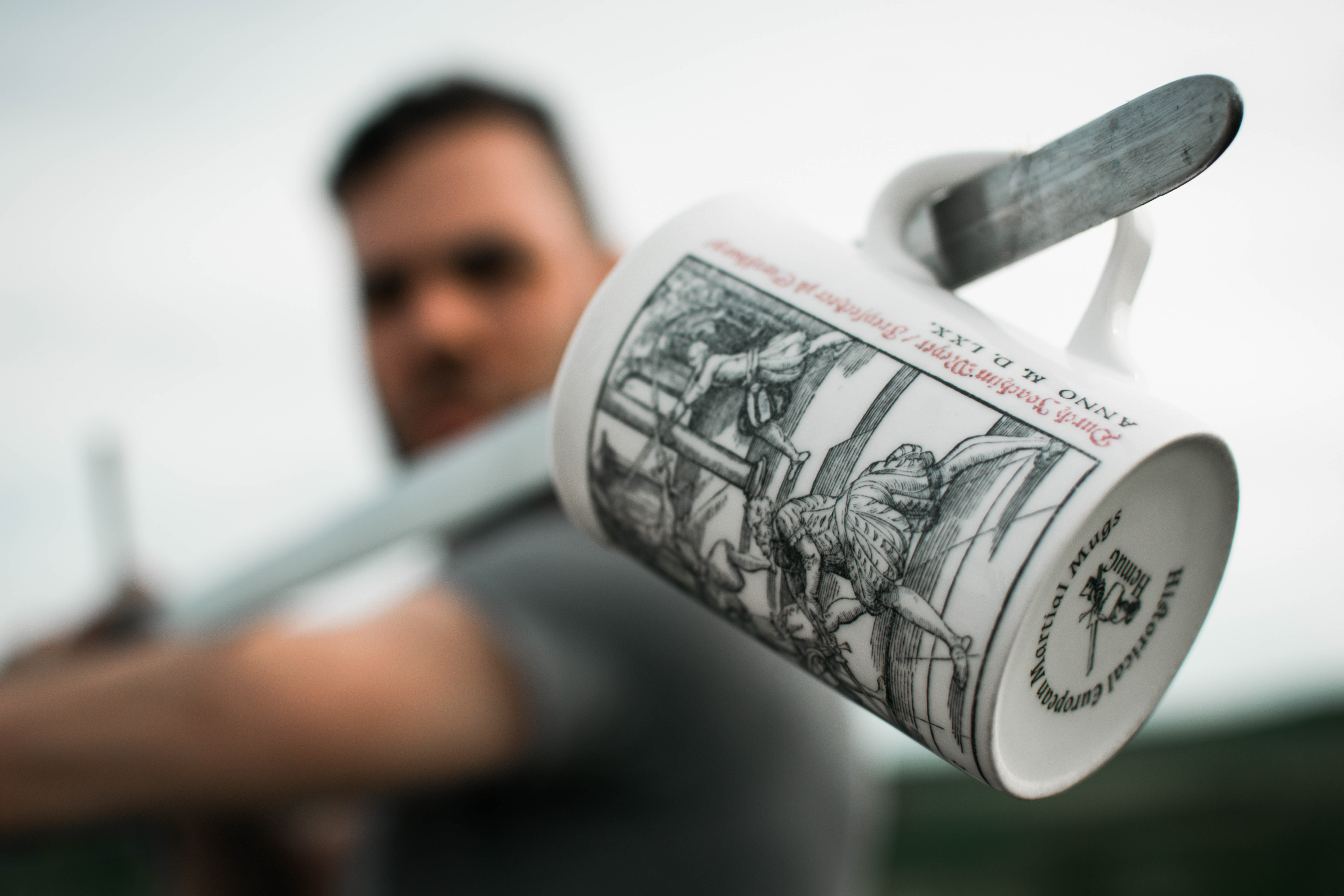 Inspired by the German fencing master, Joachim Meyer’s 1570 fight book ‘Gründtliche Beschreibung der Kunst des Fechtens’ the design of this mug features an original woodcut depicting longsword techniques, framed by the title and author of the work, reimagined in an authentic, yet modern style.